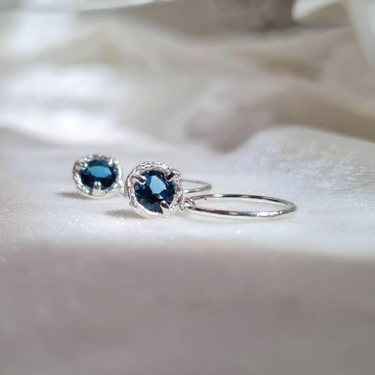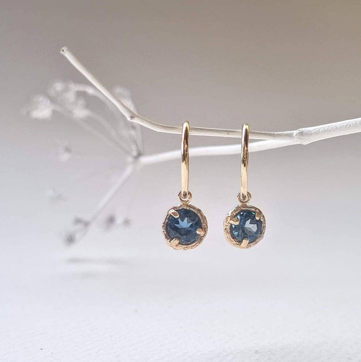Set with gorgeous peacock blue Topaz, these drops come in 3 different sizes to hold 3 different size gemstones - 5mm, 4mm or 3mm.