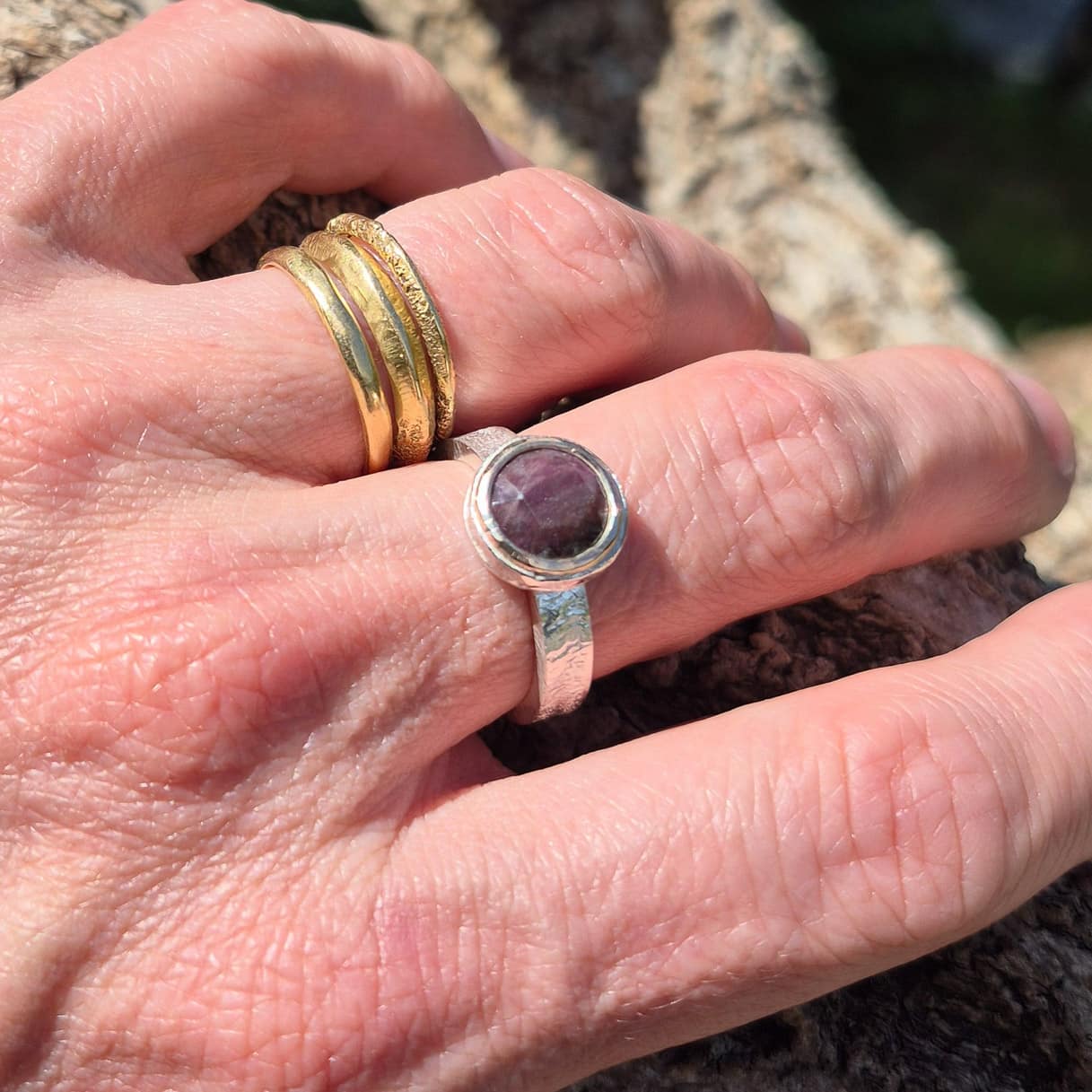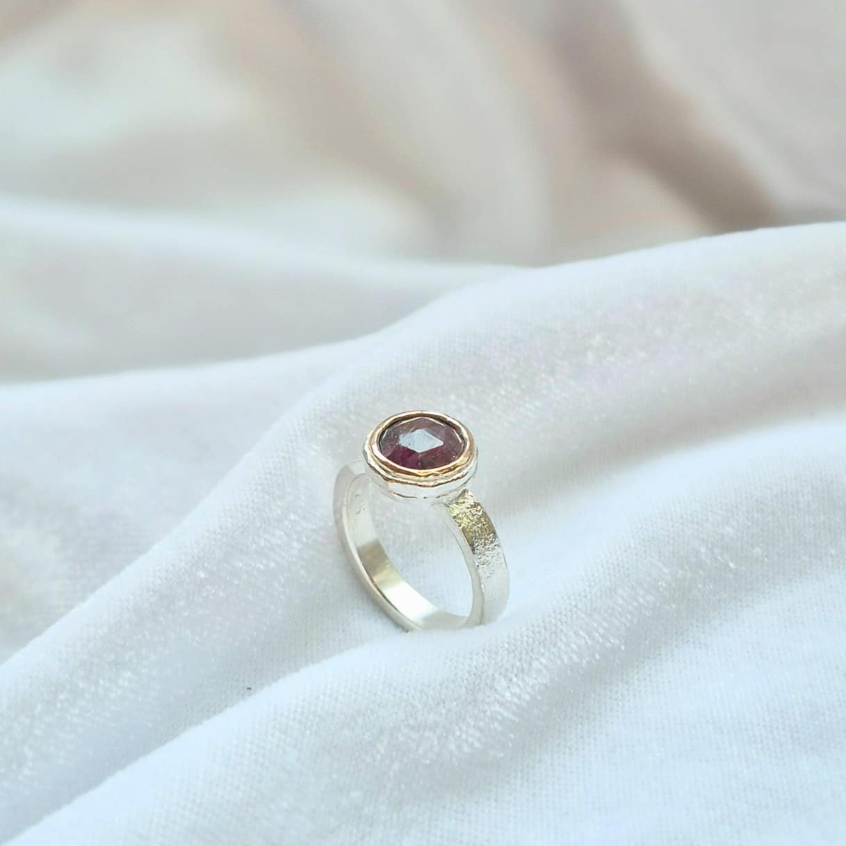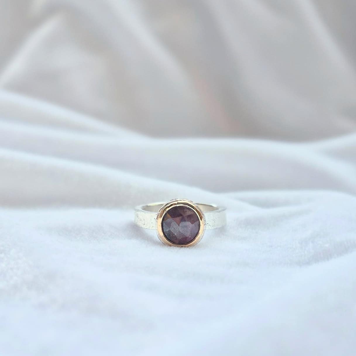 This one-of-a-kind rosecut Ruby Ring combines textured silver and solid 9ct yellow gold to create a wearable treasure, unearthed just for you.