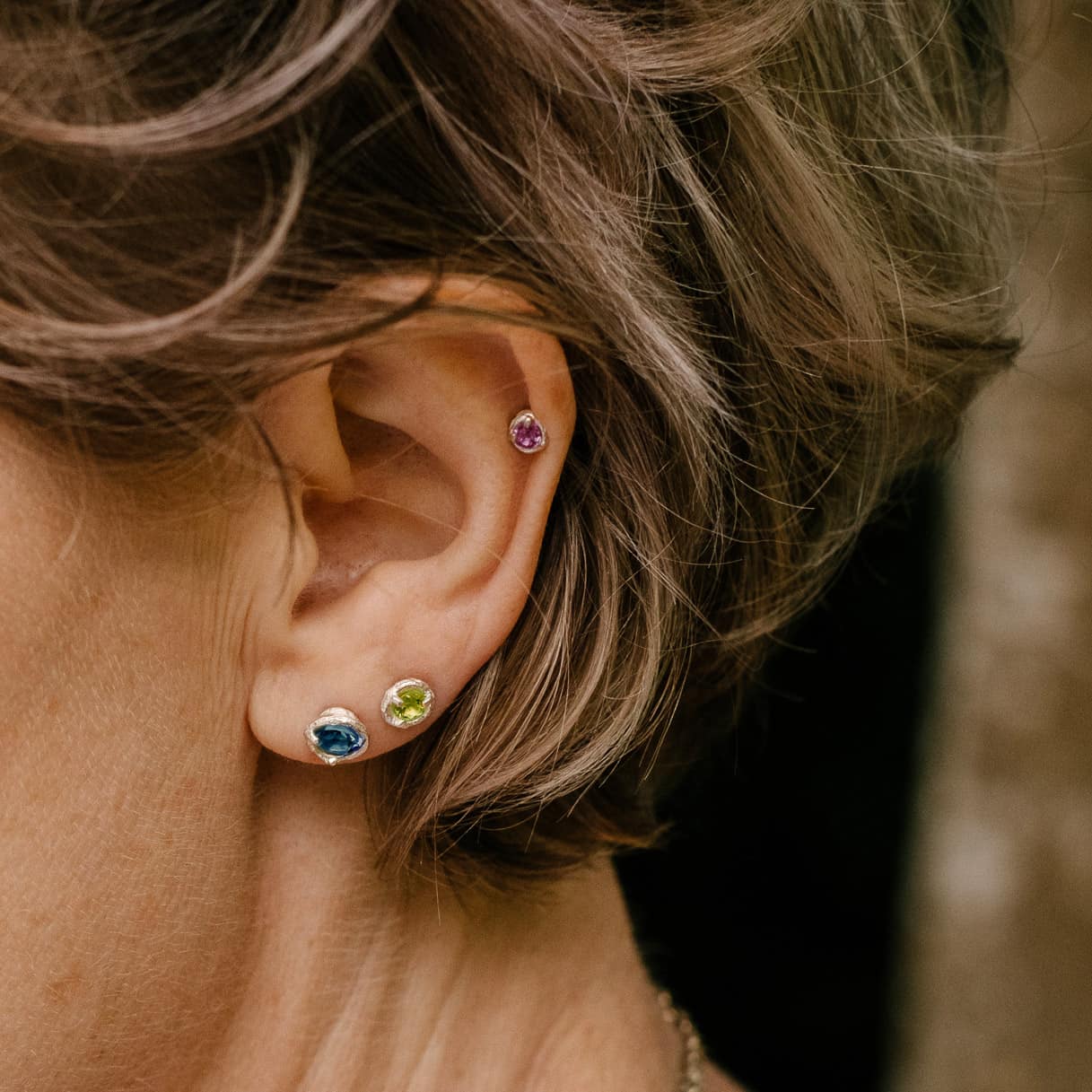 Set with drop-dead peacock blue London Topaz, these studs come in 3 different sizes to hold 3 different size gemstones - 5mm, 4mm or 3mm.