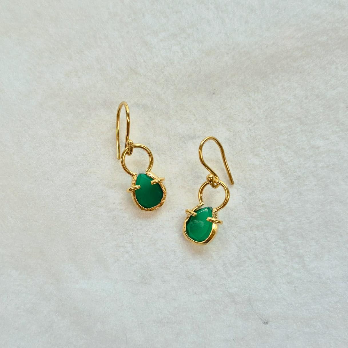 Made from Gold-Plated Silver and set with 2 bright Green Onyx', these earrings add a beautiful pop of colour to your day!